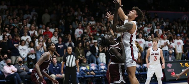 Bockler wasn’t just an observer, as he nailed a corner three-pointer, added a finger roll in the paint and completed a nifty pick-and-roll with Saxen by tossing the sophomore center a close-in pass that Saxen converted with his left hand. Don’t hold your breath, Gael fans, but with Fotu, Marciulionis, Saxen, Bockler and Jabe Mullins notching consistent minutes in relief of the starters, Saint Mary’s might be toying with a 10-man rotation.